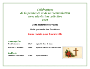 | 9h00 | Cowansville | Église Ste-Thérèse-de-l’Enfant-Jésus |